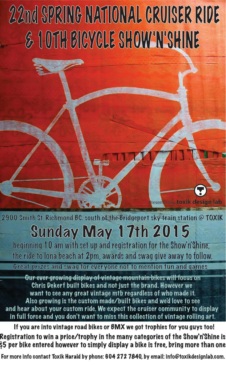 The ride leaves at 2 pm and cruises out through Richmond before returning back to Toxic Design Lab