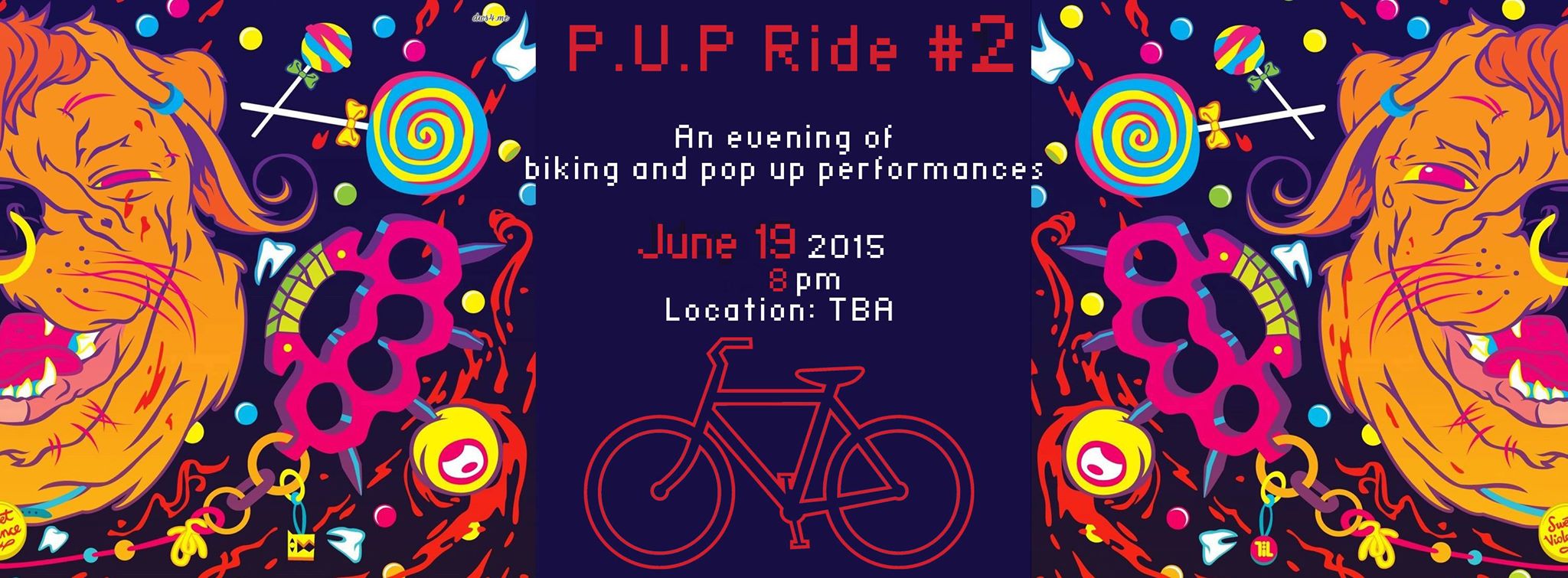 The concept is simple; everyone gathers at a central location at 8pm, we'll depart for our first pop up outdoor location at 8:30pm. After this we'll all mount-up and ride to the second location and performance, repeat for the third. Expect to see; dancers, fire spinners, visual artists, musicians, burlesque or something similar.