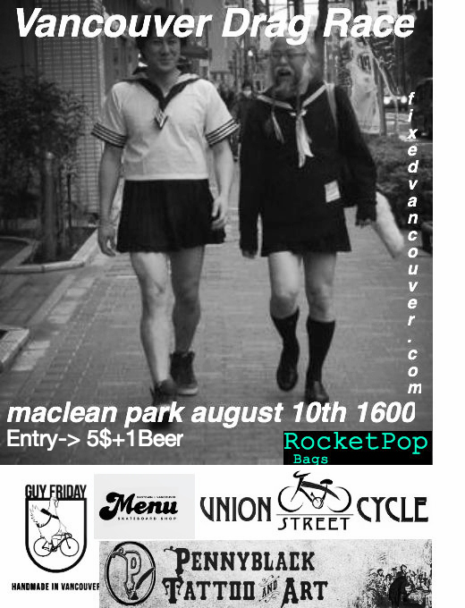 By: petra super rad alleycat with neat prizes! 5$+1 beer to enter, after main race there will be a skid comp, Shotgun contest and a Dead Baby Bike Club Ride! show up at maclean park at 1600 on saturday!